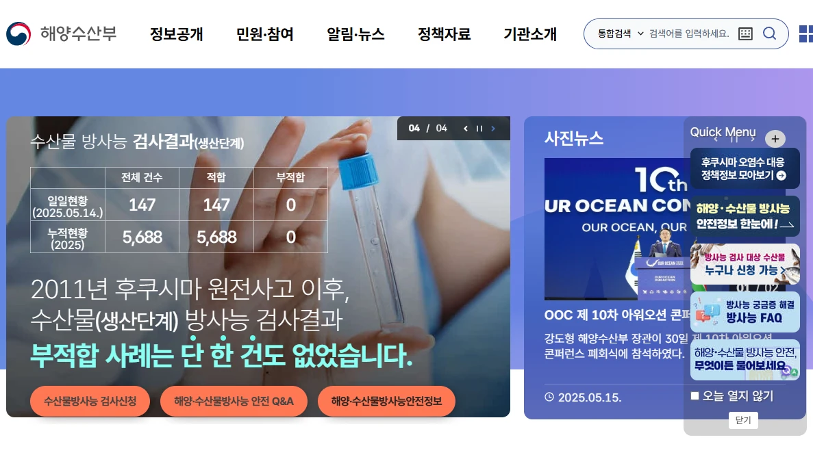 ํด์์์ฐ๋ถ ํด์·์์ฐ๋ฌผ๋ฐฉ์ฌ๋ฅ์์ ์ ๋ณด