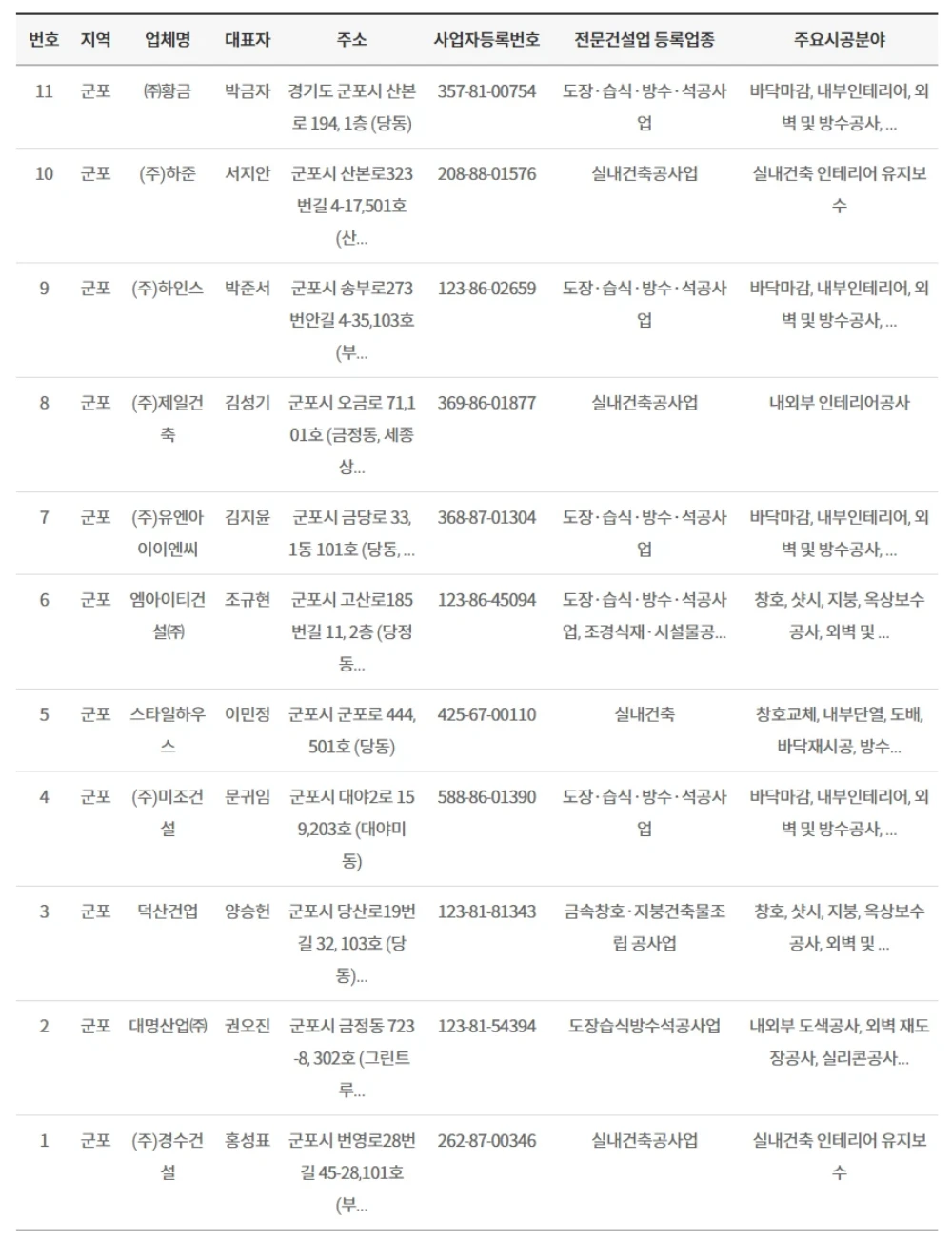 ν΄λΉ μ곡μ μ²΄κ° κ±΄μ€μ λ° κ±΄μ€λ‘ μ νλ₯Ό λ±λ‘ν μ¬μ μλ±λ‘μ¦μ 보μ νλμ§ μ¬λΆ, μΈκΈκ³μ°μ λ°νμ΄ κ°λ₯νμ§ μ¬λΆ, κ΅μΈ λ° μ§λ°©μΈλ₯Ό μλ©νλμ§ μ¬λΆ, μ¬λ¬΄μ€μ μ΄μνκ³ μλμ§μ λν μ¬λΆ, 1λ μ΄μ μ 문건μ€μ λ±λ‘μ νκ³ μλμ§μ μ¬λΆ λ± μ¬λ¬ κ°μ§ κΈ°μ€μ λͺ¨λ μΆ©μ‘±ν κ²½μ°λ§ μκ°λμ΄ μμ΄ μ’ λ λ―Ώκ³ μΌμ λ§‘κΈΈ μ μκ² μ£ .^^ κ·Έλ κ² κ²½κΈ°λκ° λνμ 문건μ€ννμ ν¨κ» μΈμ¦ν μ§μ리 μ곡μ 체λ 2025λ 2μ κΈ°μ€μΌλ‘ 15κ° μ·κ΅°μ μλ μ΄ 143κ° μ 체. κ΄λͺ 1κ³³, κ΄μ£Ό 8κ³³, κ΅°ν¬ 11κ³³, κΉν¬ 9κ³³, λ¨μμ£Ό 31κ³³, λΆμ² 13κ³³, μμ 16κ³³, μν₯ 1κ³³, μμ± 9κ³³, μμ 8κ³³, μμ 11κ³³, νν 15κ³³, ν¬μ² 2κ³³, νλ¨ 7κ³³, νμ± 1κ³³ λ±μΈλ°μ.