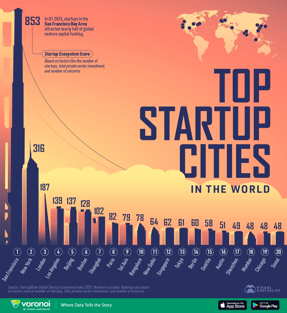 ๊ทธ๋ฐ ์คํํธ์ ์ด ๋ชจ์ธ ๋์๋ ์ด๋์ ๊ธ๋ก๋ฒ ๊ธฐ์ ๊ฒฝ์์ ์ค์ฌ์ด ๋์ด๊ฐ๊ณ ์์ต๋๋ค. voronoi๊ฐ StartupBlink์ ๊ธ๋ก๋ฒ ์คํํธ์ ์์ฝ์์คํ ์งํ 2025(Global Startup Ecosystem Index 2025)๋ฅผ ๋ฐํ์ผ๋ก ์ ๋ฆฌํ ์ด ์ธํฌ๊ทธ๋ํฝ์ ํ์ ์ผ๋ก ์์ฅ์ ๋ฐ๊พธ๊ณ ์ถ์ด ํ๋ ์คํํธ์ ์ด ์ฑ์ฅํ๊ธฐ ์ข์ ์ธ๊ณ ์ต๊ณ ์ ์คํํธ์ ๋์์๋ ์ด๋ค ๊ณณ๋ค์ด ์๋์ง ์๊ฐํ๊ณ ์์ต๋๋ค.