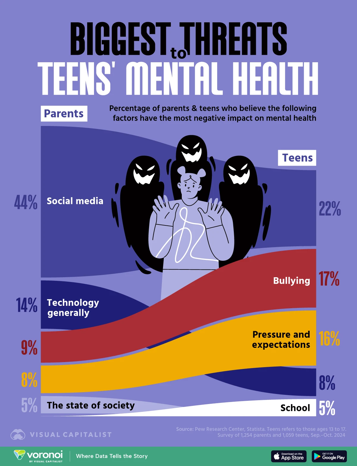 Key Takeaways: While 44% of parents see social media as the biggest threat to teen mental health, only 22% of teens agree. Teens feel more pressure…