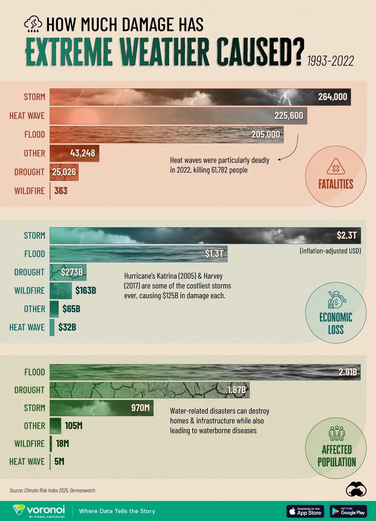 Key takeaways Data from the Climate Risk Index 2025 outlines the damage caused by various natural disasters from 1993 to 2022 Storms have caused…