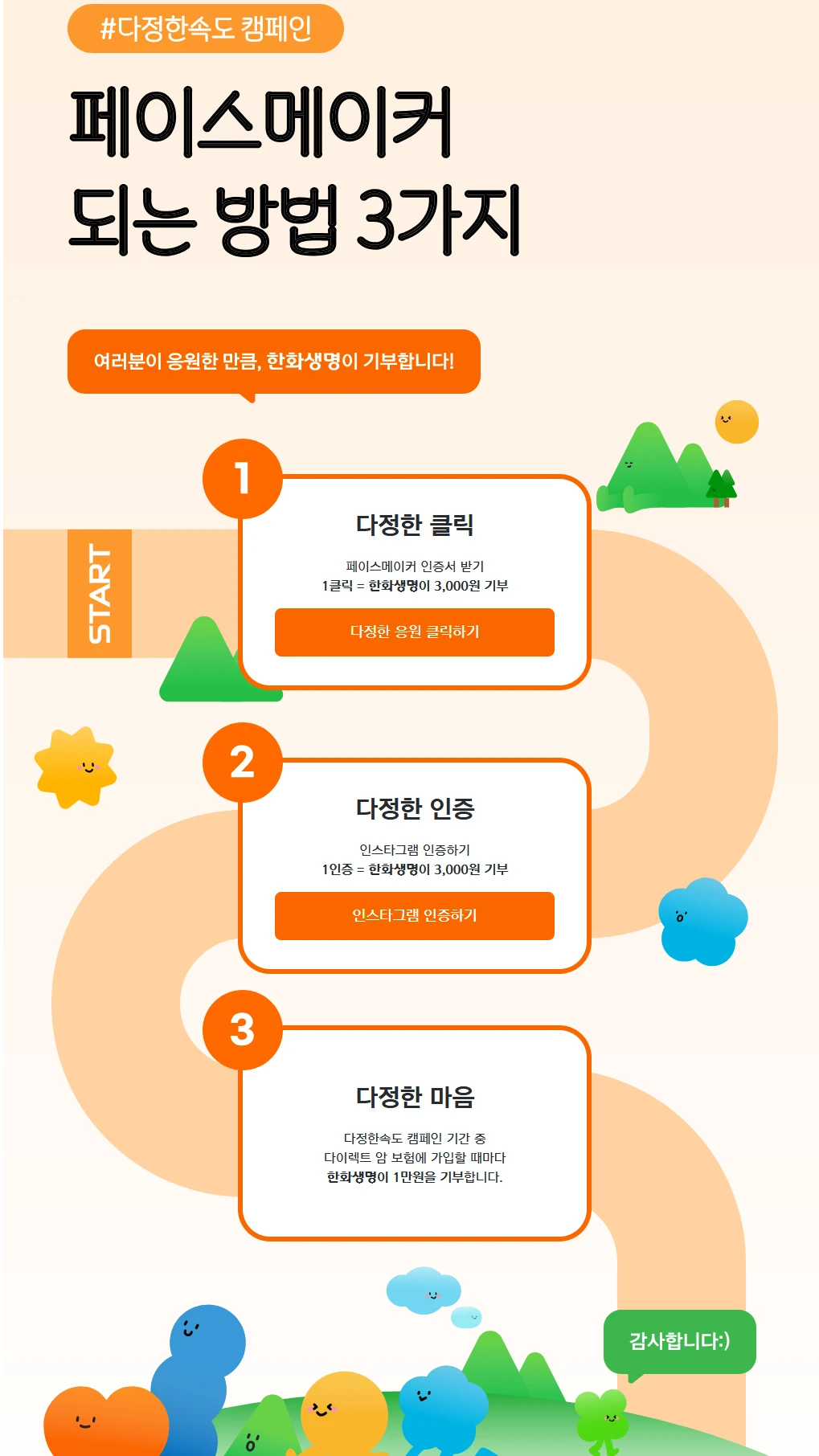 μ΄ 3,000μμ κΈ°λΆνκ³ ν΄λ¦μ ν΅ν΄ λ€μ ν μλλ‘ ν¨κ» κ±·κΈ°λ‘ ν μ°Έμ¬μμκ²λ ‘νμ΄μ€λ©μ΄μ»€ μΈμ¦μ’λ₯Ό λ°κΈνλ 1λ¨κ³μ 1λ¨κ³μμ μ»μ νμ΄μ€λ©μ΄μ»€ μΈμ¦μλ₯Ό μΈμ€νκ·Έλ¨ μ€ν 리/κ²μκΈλ‘ μ
