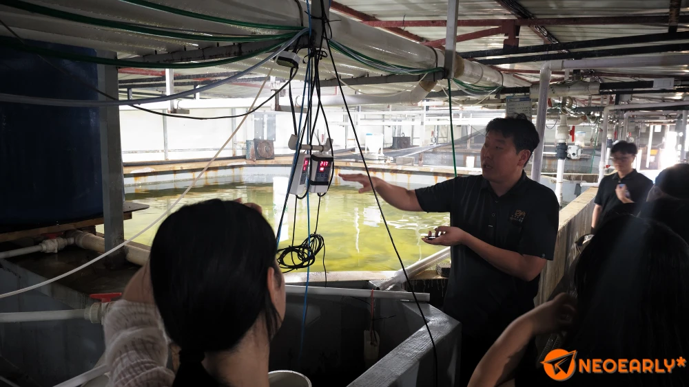 ์ดํ ๋ผ์จ๋ฐ๋ค ๊น์ข ์ ์์ฅ๋๊ณผ ์์์ฅ์ ๋์๋ดค๋๋ฐ, ๊ณณ๊ณณ์ ์ค์น๋ ์ผ์๋ฅผ ํตํด ์์จ์ ์ฒดํฌํ๊ณ ๋๋ผ ํํฐ๋ก ์ฌ์ก์์กฐ์์ ๋์จ ๋ถ๋จ ๋ฑ์ ์ ๊ฑฐํ๊ณ ์๋ชจ๋์๋ ๋ฐํ ๋ฆฌ์๋ก ๋ถํด(์ด ๋ฐํ ๋ฆฌ์๋ฅผ ํค์์ผ ํ๊ธฐ์ ํญ์์ ๋ฅผ ์ธ ์ ์๋ค๊ณ ํ๋๊ตฐ์)ํ๊ณ , PH๊ฐ ๋ฎ์์ง๊ณ ์ฐ์๊ฐ ๋ถ์กฑํด์ง ๋ฌผ์ ํ์ฐ์์๋ํธ๋ฅจ(์ํ์ฒจ๊ฐ๋ฌผ)์ ๋ฃ๊ณ , ์ค์กด๊ณผ UV๋ก ์ด๊ท ํ๋ ์ผ๋ จ์ ๊ณผ์ ์ ํตํด ์ค๋งํธํ๊ฒ ๊ด๋ฆฌ๋๊ณ ์๋๊ตฐ์. ์ ๊ฐ ์ด์ ์ ์์์ฅ์ ๊ฐ๋ณธ ์ ์ด ์์ด์ ์ผ๋ฐ ์์์ฅ๊ณผ ์ค์ ๋๋ ์ฐจ์ด๋ฅผ ๋น๊ตํ๋ ๊ฑด ๋ฌด๋ฆฌ์์ง๋ง, ์ ํต์ ์ธ ๋ฐฉ์์ผ๋ก ์ด์๋๋ ๊ฒ๊ณผ๋ ๋ค๋ฅด๊ฒ ์ฒด๊ณ์ ์ด๊ณ ๊ณผํ์ ์ผ๋ก ์ด์๋๋ ๊ฑธ ๋ณด๊ณ ์์๋ ์ด๊ณณ์ด ํํฌ๋ฃจ ์์์ฅ ํด์น์ ๋ฐ์ ๊ฒ ์๋๊ตฌ๋๋ผ๋ ์๊ฐ๊ณผ ํจ๊ป ์ด๊ณณ์์ ๋ฌดํญ์์ ๋ก ๊ธธ๋ฌ์ง ๋์น๋ฅผ ๋ง๋ณด๊ณ ์ถ๋ค๋ ์๊ฐ์ด ๋ค์์ง๋ง, ์ฌํด ์ถํํ ๋ฌผ๋์ ์์ง ์ ํค์ฐ๊ณ ์๋ ๋ฐ๋ค ์ฌ๊ธฐ์ ๊ธธ๋ฌ์ง๋ ๋์น๋ ๋๋งค์์๊ฒ ๋์ด๊ฐ ๋ ์ ๋๋ก ๋์ฐ๋ฅผ ๋ฐ์ง ๋ชปํ๊ณ ์๋ค๊ณ ํ๋๋ผ๊ณ ์.