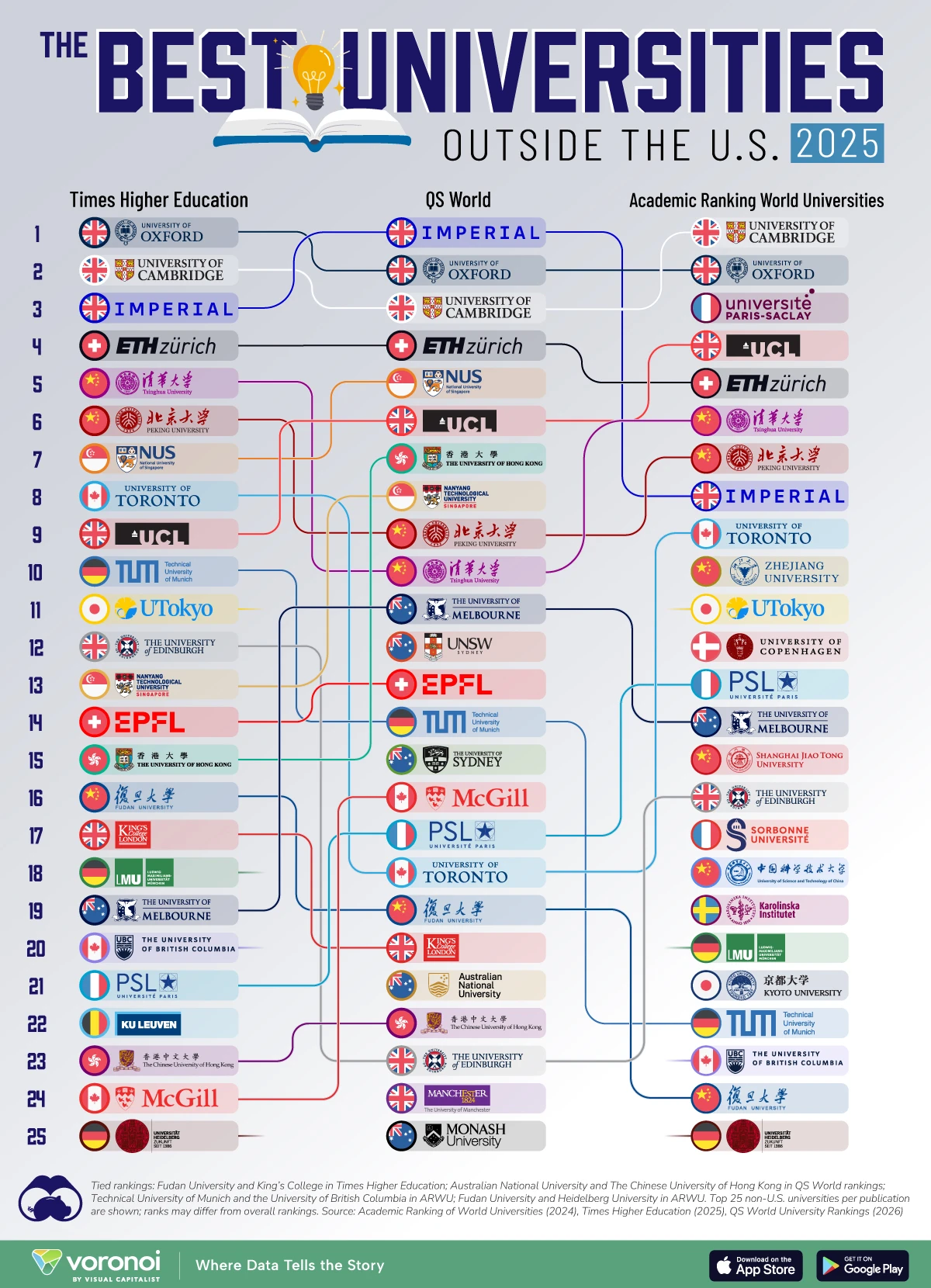 Ranked: The 25 Best Universities That Are Not in the U.S. (According to 3 Publications)