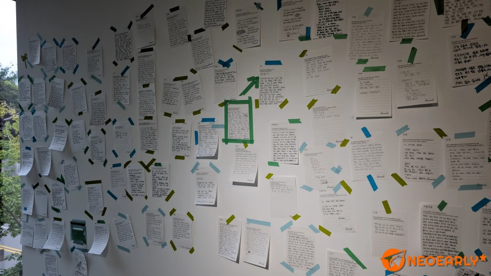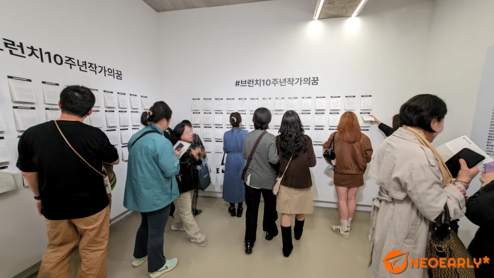 1์ธต์ ์๋ ๋ณ๊ด ๊ฐ์ ๊ฑด๋ฌผ์์ ๋ธ๋ฐ์น๋ผ๋ ํ๋ซํผ์ด ๊ฑธ์ด์จ 10๋ ์ ์ด์ผ๊ธฐ๋ฅผ ํ์ด๋ด๋ฉฐ ๋ธ๋ฐ์น๋ฅผ ํตํด ๋ง๋ค์ด์ง ์ซ์์ ๊ทธ ์ซ์๋ณด๋ค ๋ ํฐ ๋ธ๋ฐ์น ์ธ์์ ๋์๋ณด๋ฉฐ ๋์ ๊ธ์ฐ๊ธฐ๋ฅผ ๋์๋ณด๊ฒ ํ๊ณ . ๋ณธ๊ฑด๋ฌผ 2์ธต์ ์ค๋ฅด๋ฉด ๋ธ๋ฐ์น๋ฅผ ํตํด ์๊ฐ๊ฐ ๋ ์ด๋ค์ด ์ถ๊ฐํ ์ฑ ๊ณผ ๋ช๋ช ์๊ฐ์ ์ด์ผ๊ธฐ. ๊ทธ๋ฆฌ๊ณ ๊ทธ๋ณด๋ค ๋ ์ค์ํ ์ถํ์ ์ ํ์ง๋ง, ๊ฟ์ ๊ฐ์ง 100์ธ์ ๋ธ๋ฐ์น ์๊ฐ์ ๊ธ์ด ๋ฐฉ๋ฌธ๊ฐ์ ๋ง์ดํ๊ณ ์์์ต๋๋ค. ์ ์ํ๋ฅผ ์ฐพ์ ๋ฐฉ๋ฌธ๊ฐ๋ ๊ธ์ ํ์ ๋ฏฟ๋ ์ด๋ค์ด๋ผ ๊ทธ๋ฐ์ง ๊ผผ๊ผผํ๊ฒ ์ฝ์ผ์๋๊ตฐ์. ๋ง์ง๋ง 3์ธต์์๋ ์์ ์ ์๊ฐ์ ๊ธ๋ก ์จ๋ณด๋ ๊ณณ์ด์๋๋ฐ 10๊ฐ์ง ์ฃผ์ ์ ๋ํ ๋์ ์ด์ผ๊ธฐ๋ฅผ ์ ๋ ๊ณณ์ด๋ผ ์ ๋ ์ ์ด์ ๋ฒฝ์ ๋ถ์ฌ๋๊ณ ์์ต๋๋ค.