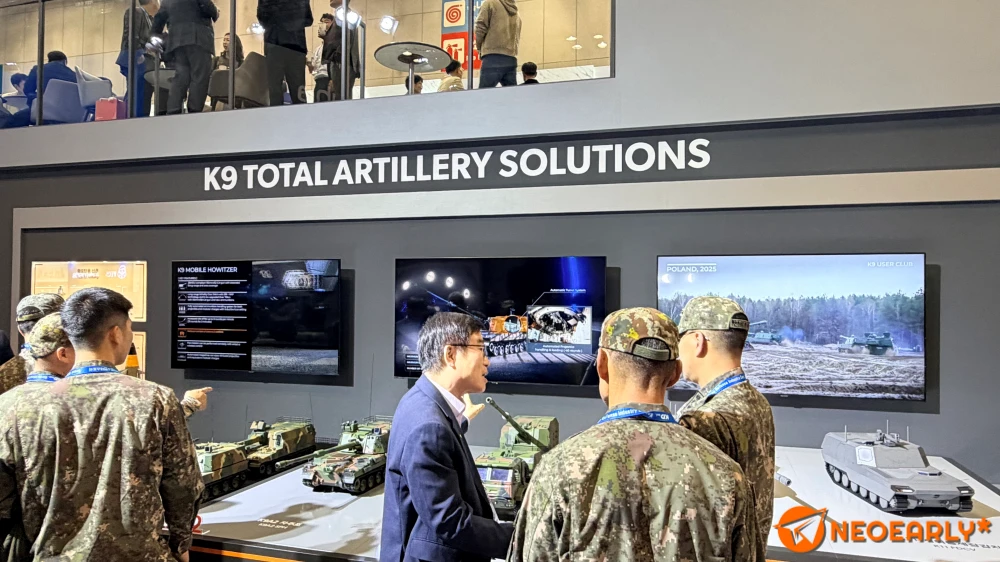 λŒ€ν•œλ―Όκ΅­ λ°©μ‚°μ˜ μ•„μ΄μ½˜ 같은 K9 μžμ£Όν¬κ°€ κ±Έμ–΄μ˜¨ 길을 보여쀀 K9 μ†”λ£¨μ…˜μ‘΄λ„ ν₯λ―Έλ‘œμ› λŠ”λ°μš”. 잘 λͺ¨λ₯΄κ³  μžˆμ—ˆλ˜ K9A2λŠ” AIλ₯Ό μ ‘λͺ©ν•œ μžλ™ν™” ν¬νƒ‘μœΌλ‘œ 운용 인λ ₯을 μ€„μ˜€κ³ , μ°¨μ„ΈλŒ€ λͺ¨λΈμΈ K9A3μ—μ„œλŠ” μ™„μ „νžˆ λ¬΄μΈν™”λ˜μ–΄ μžμœ¨κΈ°λ™μ΄ κ°€λŠ₯ν•˜λ‹€κ³  ν•˜λ”λΌκ³ μš”. K9도 AIκ°€ 주도할 λ―Έλž˜ν˜• λ°©μ‚° 체계에 λ…Ήμ•„λ“€κ³  μžˆλŠ” κ±°μ£ . μœ‘μƒμ΄ μ•„λ‹Œ 미래 λ°”λ‹€ μ „μž₯을 보여쀀 ν•΄μ–‘μ‘΄μ—μ„œλŠ” ν•œν™”μ˜€μ…˜μ΄ μ„ λ³΄μ΄λŠ” AI 기반 μ°¨μ„ΈλŒ€ μ „λž΅ μˆ˜μƒν•¨μ΄ κ³΅κ°œλλŠ”λ°μš”. ν•œν™”μ‹œμŠ€ν…œμ΄ μ „νˆ¬ 체계와 κΈ°κ΄€μ œμ–΄ 체계, 함ꡐ 체계λ₯Ό 톡합해 세계 졜초둜 선보인 슀마트 λ°°ν‹€μ‹­ κΈ°μˆ λ„ λ§Œλ‚  수 μžˆμ—ˆλŠ”λ° AIκ°€ μ•Œμ•„μ„œ ν‘œμ μ„ μΈμ‹ν•˜κ³  ꡐ전을 관리해 μ „νˆ¬ λ“±μ˜ μƒν™©μ—μ„œλ„ μž„λ¬΄μˆ˜ν–‰λ ₯을 높일 거라고 ν•˜λ˜λ°...