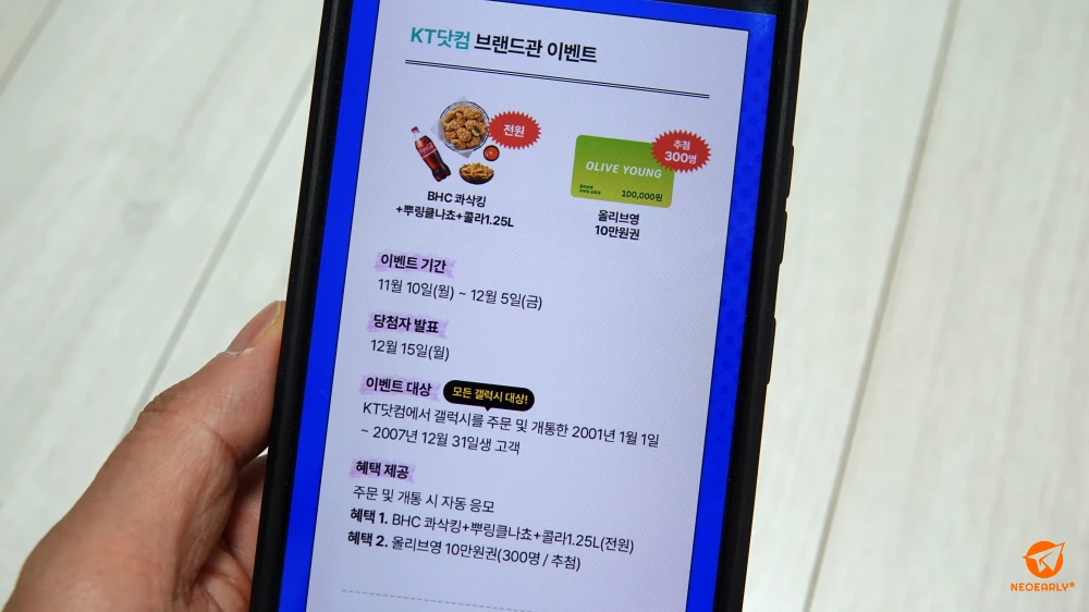 λ§μ§λ§μΌλ‘ KTλ·μ»΄μμ κ°€λμλ₯Ό μ£Όλ¬Έ/κ°ν΅ν 2001λ ~2007λ μ κ³ κ°μκ² BHC μ½°μνΉ+λΏλ§ν΄λμ΅Έ+μ½λΌ 1.25Lλ₯Ό μ μμκ² μ 곡νκ³ , μ¬λ¦¬λΈμ 10λ§ μκΆμ 300λͺ μκ² μΆμ²¨μΌλ‘ μ 곡νλ€κ³ νκ³ , κ°€λμ S25μ ν΄λλΈ7 λΌμΈμ ꡬμ ν κ³ κ° μ€ μνμ ννμΌλ‘ κ°€λμ λ²μ¦3 νλ‘λ₯Ό ꡬμ νλ©΄ λ²μ¦3 νλ‘λ₯Ό 99.000μμ ꡬμ ν μ μλ μΏ ν°μ, κ·Έλ κ² κ΅¬λ§€ν μ νμ μΈλ°μ±νλ νκΈ°λ₯Ό μμ±νλ©΄ μ¬λ¦¬λΈμ 2λ§ μκΆμ 100% μ¦μ νλ€λ μλ°νκ² μ±κΈ°μλ©΄ μ’κ² λ€μ.