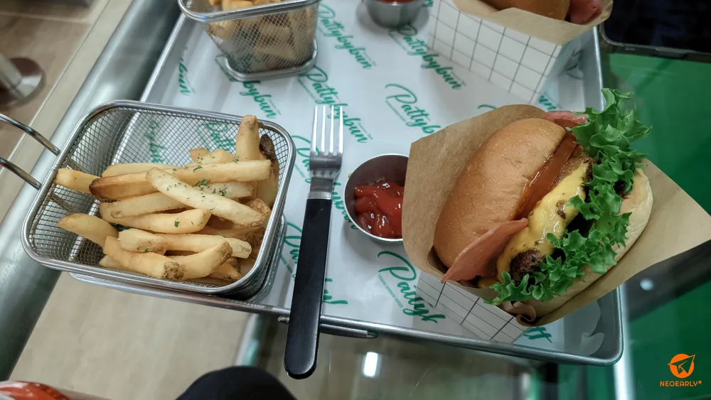 ํ๋ฒ๊ฑฐ. ๋ฏธ๊ตญ์ ํจ์คํธํธ๋์ ์ ์ ๊ฐ์ ์์์ด์ง๋ง, ์์ ๋ฒ๊ฑฐ๋ผ๋ ์์์ด๊ฐ ๋ํด์ง๋ฉด ์กฐ๊ธ ๋ค๋ฅธ ๋๋์ด ๋๊ณค ํ๋๋ฐ์. ์ ์ด์ ํจ์คํธํธ๋๋ ์์ ๋ฒ๊ฑฐ๋ผ๊ณ ํ๋ ๊ณณ์ด๋ ๋ฒ๊ฑฐ ์์ ๋ค์ด๊ฐ๋ ๊ตฌ์ฑ๋ฌผ์ ๋น์ท๋น์ทํ๋ฐ ์ด๋ฏธ์ง๊ฐ ์ฐธ ๋ค๋ฅด์ฃ ? ์. ๊ฐ๊ฒฉ๋ ์ ๋ฒ ์ฐจ์ด๊ฐ ๋๋๊ตฐ์. ์ด๋ฒ์ ์๊ฐํ ๊ณณ์ ํ์ฌ์์ ๊ทธ๋ฆฌ ๋ฉ์ง ์์ ํจํฐ๋ฐ์ด๋ฒ(PATTY BY BUN) ํ๊ต์ํ๋์ ์ด์ผ๊ธฐ์ ๋๋ค. ํ๋ฆฌ๋ฏธ์ ํธ๋๋ฉ์ด๋ ๋ฒ๊ฑฐ๋ผ๋ฉฐ ์์ ๋ฒ๊ฑฐ๋ผ๋ ์ ์ ๋ด์ธ์ฐ๋ ๊ณณ์ด์ฃ . ํ๋์ฐจ์ด์ฆ์ด๊ธด ํ์ง๋ง...