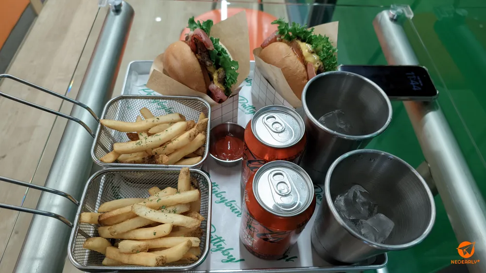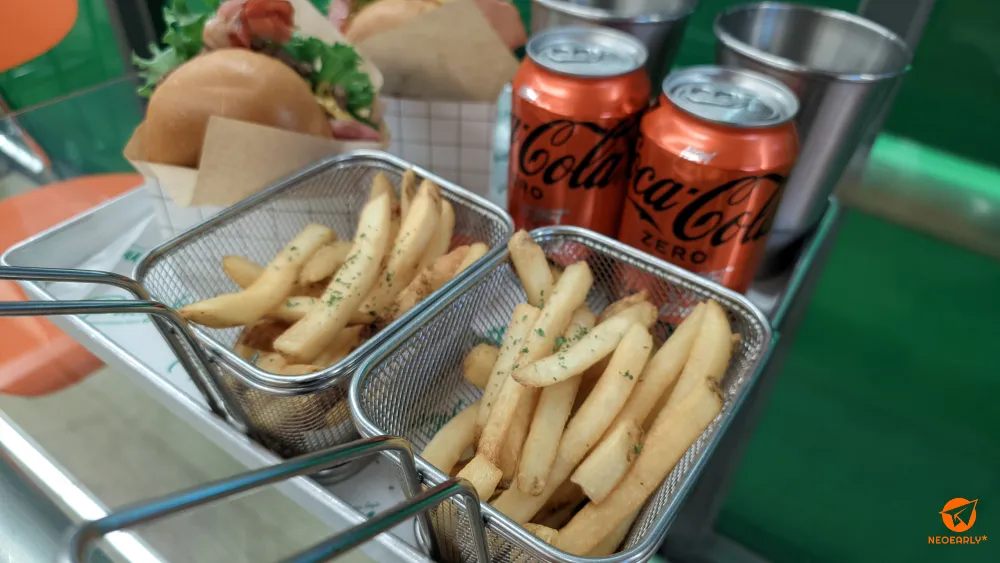 ์ ์ฒด์ ์ผ๋ก ํํ ์กฐ๋ช ์๋ ๋ น์๊ณผ ์ค๋ ์ง์์ ๋๋น๋๋ ์ปฌ๋ฌ๊ฐ ๋๋ณด์ด๋ ๋งค์ฅ. ์ฃผ๋ฌธ์ ์์ฆ ๋๋ถ๋ถ์ ์๋น์ด ๊ทธ๋ ๋ฏ ํค์ค์คํฌ์์ ํ๋ฉด ๋๋๋ฐ์. ์ ๊ฐ ์ฃผ๋ฌธํ ๊ฑด ๋ฒ ์ด์ปจ์น์ฆ๋ฒ๊ฑฐ ์ธํธ์์ต๋๋ค. ๋ฒ ์ด์ปจ์น์ฆ๋ฒ๊ฑฐ๋ฅผ ๊ธฐ๋ณธ์ผ๋ก ํ๋ ์นํ๋ผ์ด๋ ์ด๋์ธ๋ง ๋ฑ ์ฌ์ด๋ ํ๋, ์ ๋ก์ฝ๋ผ ๊ฐ์ ํ์ฐ์๋ฃ ํ๋์ ํ๋ฒ๊ฑฐ๋ฅผ ๋จน๋๋ค๊ณ ํ๋ฉด ์ผ๋ฐ์ ์ผ๋ก ๋ ์ฌ๋ฆฌ๊ฒ ๋๋ ์ต์ํ ์กฐํฉ์ด์ฃ .