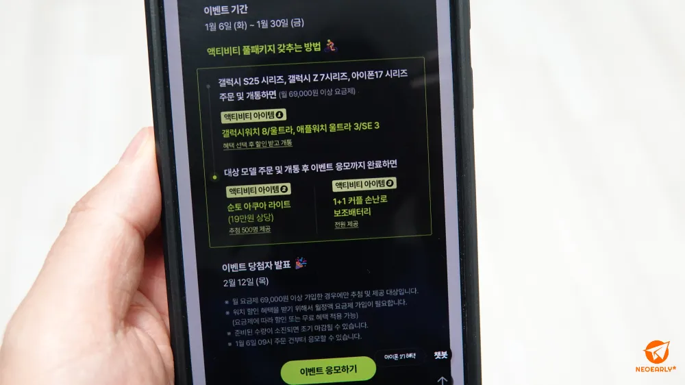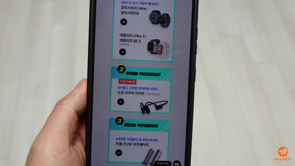 1์ 6์ผ๋ถํฐ 1์ 30์ผ ์ฌ์ด์ ๊ฐค๋ญ์ S25 ์๋ฆฌ์ฆ๋ ๊ฐค๋ญ์ Zํด๋7์ด๋ ํ๋ฆฝ7 ์๋ฆฌ์ฆ, ์์ดํฐ 17 ์๋ฆฌ์ฆ๋ฅผ ์ฃผ๋ฌธํ๊ณ ์ 69,000์ ์ด์ ์๊ธ์ ์ ๊ฐ์ ํ๋ฉด ๊ฐค๋ญ์ ์์น ์ธํธ๋ผ(15๋ง ์)๋ ๊ฐค๋ญ์ ์์น8(0์) ๋๋ ์ ํ ์์น ์ธํธ๋ผ 3(30๋ง ์ ํ ์ธ)๋ ์ ํ์์น SE 3(30๋ง ์ ํ ์ธ) ๋ฑ์ ๋ฐ์๋ณด์ค ์ ์์ต๋๋ค. ๊ฐํต ํ ์ด๋ฒคํธ ์๋ชจ๋ฅผ ํตํด ์ํ ์์ฟ ์ ๋ผ์ดํธ๋ 500๋ช ์๊ฒ ์ถ์ฒจ์ผ๋ก 1+1 ์ปคํ ์๋๋ก ๋ณด์กฐ๋ฐฐํฐ๋ฆฌ๋ ๋ชจ๋์๊ฒ ์ ๊ณต๋๋๋ผ๊ณ ์.
