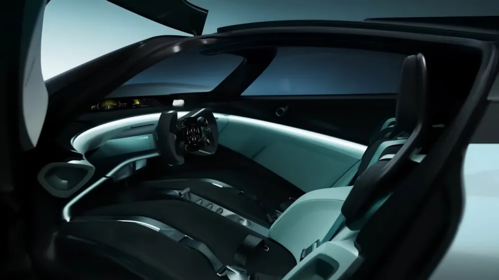 ์™ธ๊ด€๋ฟ ์•„๋‹ˆ๋ผ ๋Œ€์‹œ๋ณด๋“œ์™€ ์‹œํŠธ, ๋„์–ด ํŒจ๋„์„ ํ•˜๋‚˜์˜ ๋ฃจํ”„ ํ˜•ํƒœ๋กœ ์—ฎ์€ ์†ŒํŒŒ ๋ ˆ์ด์„œ ์ฝ˜์…‰ํŠธ๋ฅผ ์ ์šฉํ•œ ๋‚ด๋ถ€๋„ ๋ ˆ์ด์‹ฑ์นด ๋А๋‚Œ์„ ๊ฐ€์ง€๊ณ  ์žˆ๋Š”๋ฐ, ๋ ˆ์ด์‹ฑ ์Šคํƒ€์ผ์˜ ์Šคํ‹ฐ์–ด๋ง ํœ ์ด๋‚˜ 5์ ์‹ ์•ˆ์ „๋ฒจํŠธ ๋“ฑ ํฅ๋ฏธ๋กœ์šด ์š”์†Œ๊ฐ€ ๋งŽ๋”๊ตฐ์š”. ์—ฌ๋Ÿฌ ์„ผ์„œ์™€ AI๋ฅผ ์ด์šฉํ•ด ์šด์ „์ž์˜ ๊ธฐ๋ถ„๊ณผ ํ™˜๊ฒฝ์— ๋งž์ถฐ ์šด์ „์„ ๋ณด์กฐํ•˜๋Š” ๋“ฑ ๋ฏธ๋ž˜์ง€ํ–ฅ์ ์ธ ์ด๋ฏธ์ง€๋„ ์ถฉ๋งŒํ•œ๋ฐ์š”.