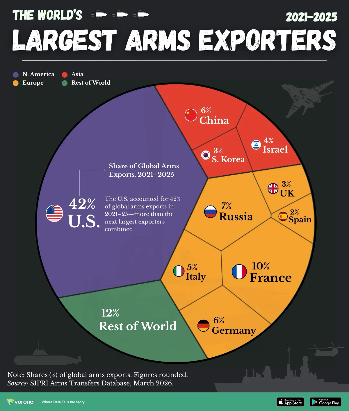 2021λ μμ 2025λ μ¬μ΄μ μΈκ³ μ΅λ 무기 μμΆκ΅μ μμλλ‘ λ―Έκ΅μ΄μμ΅λλ€. κ·Έλ€μ΄ 무기 μμΆλμμ μ°¨μ§νλ λΉμ€μ λ¬΄λ € 42%. λ€. νΌμ μΈκ³μ 곡κΈνλ 무기μ μ λ° κ°κΉμ΄λ₯Ό λ§λ€μ΄ μλ€λ μλ―Έμ£ . μ΄μ΄μ νλμ€κ° 10%, λ¬μμκ° 7%, λ μΌμ΄ 6%, μ€κ΅μ΄ 6% μμ΄μμ΅λλ€. κ·Έλ€μμΌλ‘λ μ΄ν리μκ° 5%, μ΄μ€λΌμμ΄ 4%, μκ΅μ΄ 3%, λνλ―Όκ΅μ΄ 3%, μ€νμΈμ΄ 2%, κ·Έ μΈμ λ€λ₯Έ λλΌλ₯Ό λͺ¨λ ν©μ³λ΄μΌ 12% μμ€. λ―Έκ΅μ μ λ¦° μμ²λ λ¬΄κ² μ€μ¬ νμ λ€λ₯Έ λλΌλ€μ 무기 μμΆμ μ΄λΌνκ² λκ»΄μ§ μ λμΈλ°μ.