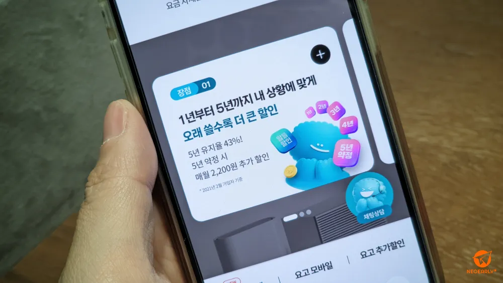 ์ฌ๋๋ง๋ค ์ง์ง๋ง๋ค ์ธํฐ๋ท ์ฌ์ฉ ํํ๋ ๋ฐฉ์, ๋ ์ํ๋ ์กฐ๊ฑด์ด ๋ค๋ฅด๋ค ๋ณด๋ ์ธํฐ๋ท ์๋๋ 100M๋ถํฐ 500M, 1G๊น์ง ์ค๋น๋์ด ์๋๋ฐ ์ด์ ์๊ณ ์ธํฐ๋ท ์๊ธ์ ๋ก ์ฝ์ ๊ธฐ๊ฐ์ 1๋ ์์ 5๋ ๊น์ง ์ ๋ง๋๋ก ์ค์ ํ ์ ์๊ณ , ๋ ๊ทธ๋ ๊ฒ ์ฝ์ ์ ํด์ ๋งค๋ฌ ์๊ธ ํ ์ธ์ ๋ฐ๊ฒ ๋๋ ์ข ๋ ์ค์์๊ฒ ์ธํฐ๋ท์ ์ธ ์ ์์ ๋ฏํ๋ฐ์. ์ง์์ TV๋ฅผ ๋ณด์ง ์๋ ํธ์ด๋ผ๋ฉด ๋ ๊ฐ๋ฒผ์์ง๋ ์๊ณ ์ธํฐ๋ท๊ณผ ์๊ณ ๋ชจ๋ฐ์ผ ์๊ธ์ ๊ฒฐํฉ์ผ๋ก ํ๋ฒ์ ์ํ๊ถ ๋ฐ๊ณ ๋๋๋ ๊ธฐ์กด์ ์ฝ์ ๋ณด ์๋ฐํ๊ฒ ์ฑ๊ฒจ๋ณด์๋ฉด ์ด๋จ๊น ์ถ๋ค์. ๋งค๋ฌ ๋ด๋ ๋์ ์ต์ํํ ์ ์๋ค๋ ๊ฑฐ ์ฌ๋ฌ ๊ตฌ๋ ์๊ธ์ ๋๋ฌธ์ ์ ์์ ๋์ด ์ฌ๋ผ์ง๊ณ ์๋ค๋ ๊ฑธ ๋๋ผ๋ ํ๋์ธ์๊ฒ๋ ์ ๋ฒ ๋งค๋ ฅ์ ์ธ ์กฐํฉ์ด ์๋๊น ์ถ๊ธฐ๋ ํ๊ณ ์.