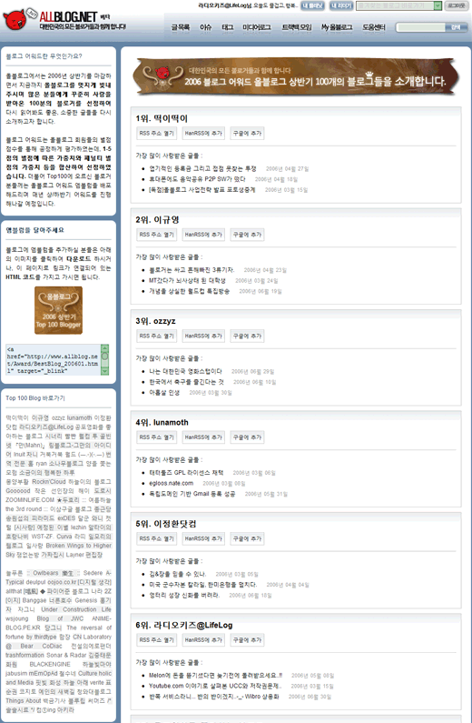 ์ฌ๋ธ๋ก๊ทธ 2006 ์๋ฐ๊ธฐ ๋ธ๋ก๊ทธ ์ด์๋, ๋ฌด๋ ค 6์